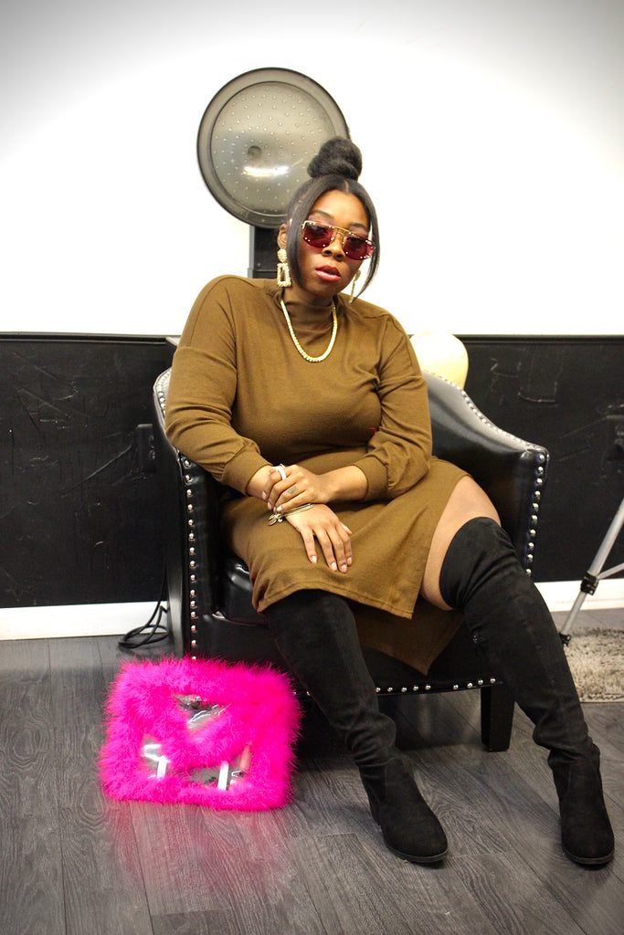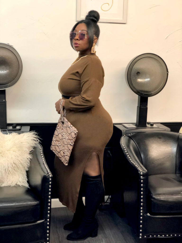 side slit mock neck top & skirt set